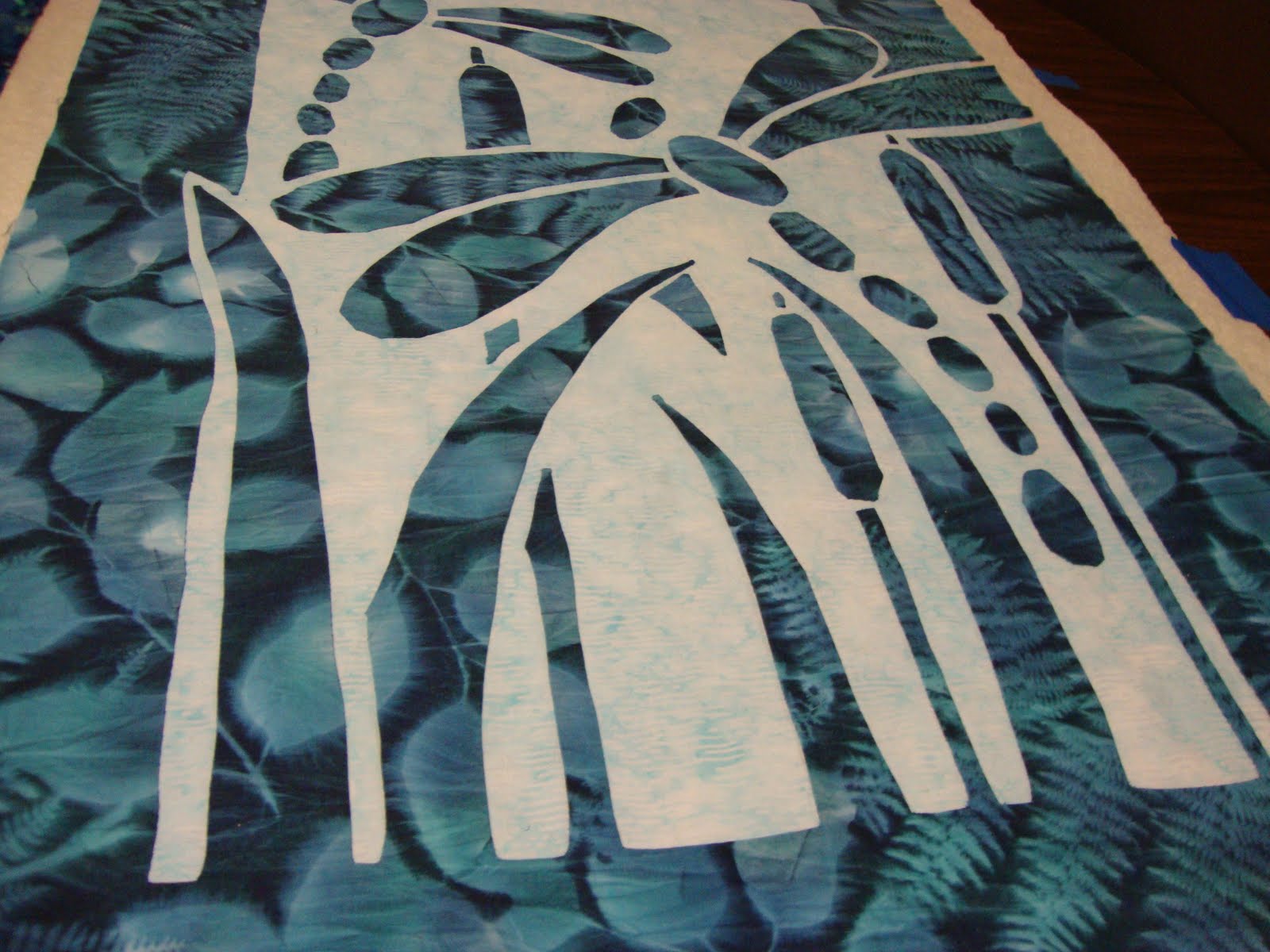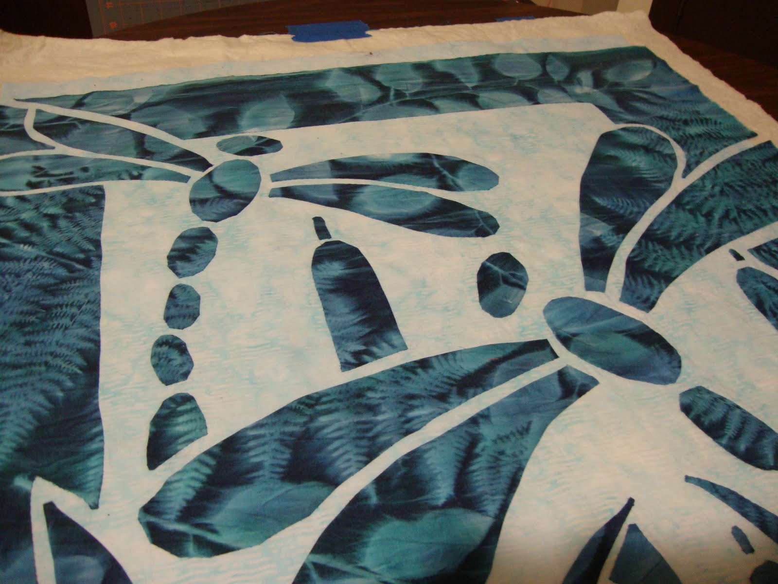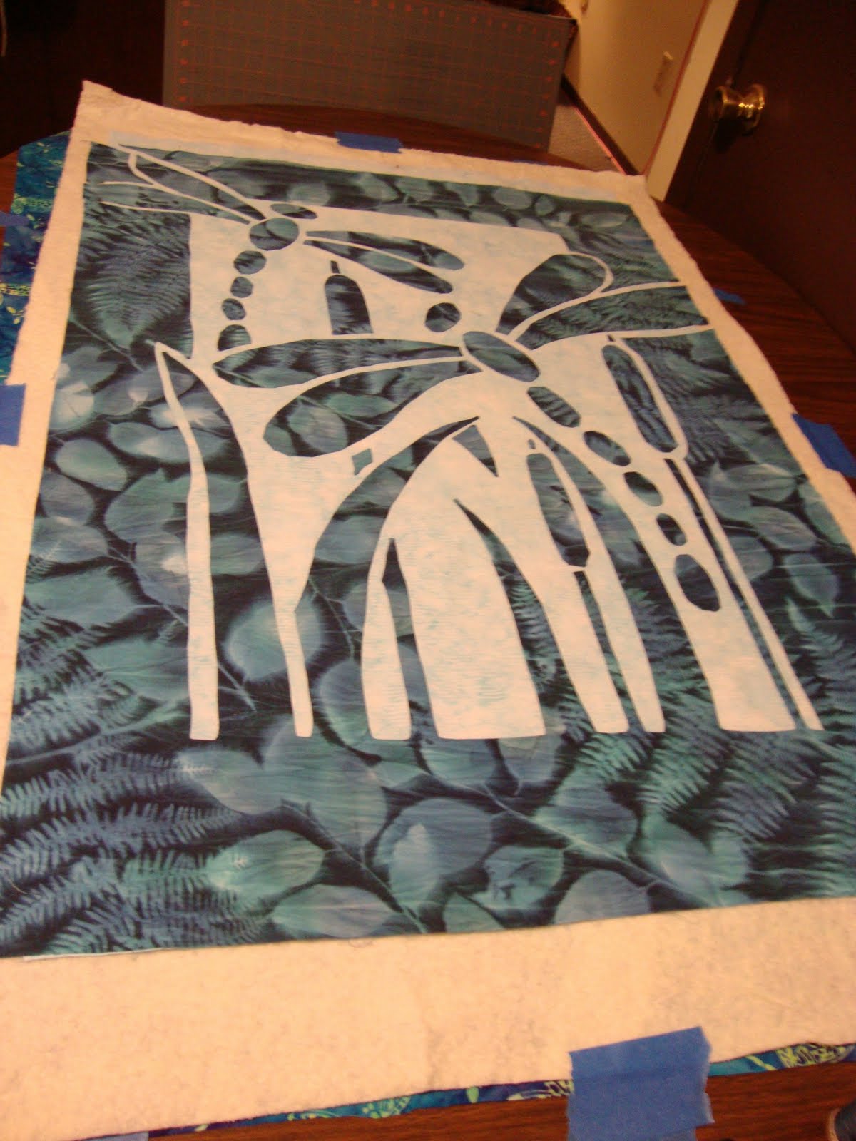 Last weekend I cleared off the kitchen table (no small task as it is usually covered with my sewing supplies) to layer and baste the wall hanging.