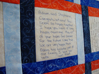One of my family members that signed the quilt has passed away in the six months since the wedding, so I have a feeling that as my relatives get older, this quilt will be cherished.