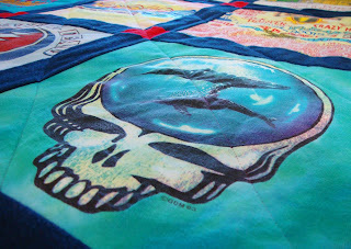 I finished a T-shirt quilt for a client’s grandson last night. It’s made up of his shirts from school, Dance Marathon, vacations with his grandparents and some of his favorite rock bands.