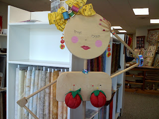 Last week I found Quilting Divas Sewing Boutique in Green Bay, Wis., an amazing shop were sassy meets quilting. Take the store’s mascot for example, a life-sized stick figure quilter made out of sewing notions. Yes, those are pin cushions for breasts.