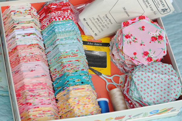 Save time and be adorable by basting the hexies all at once